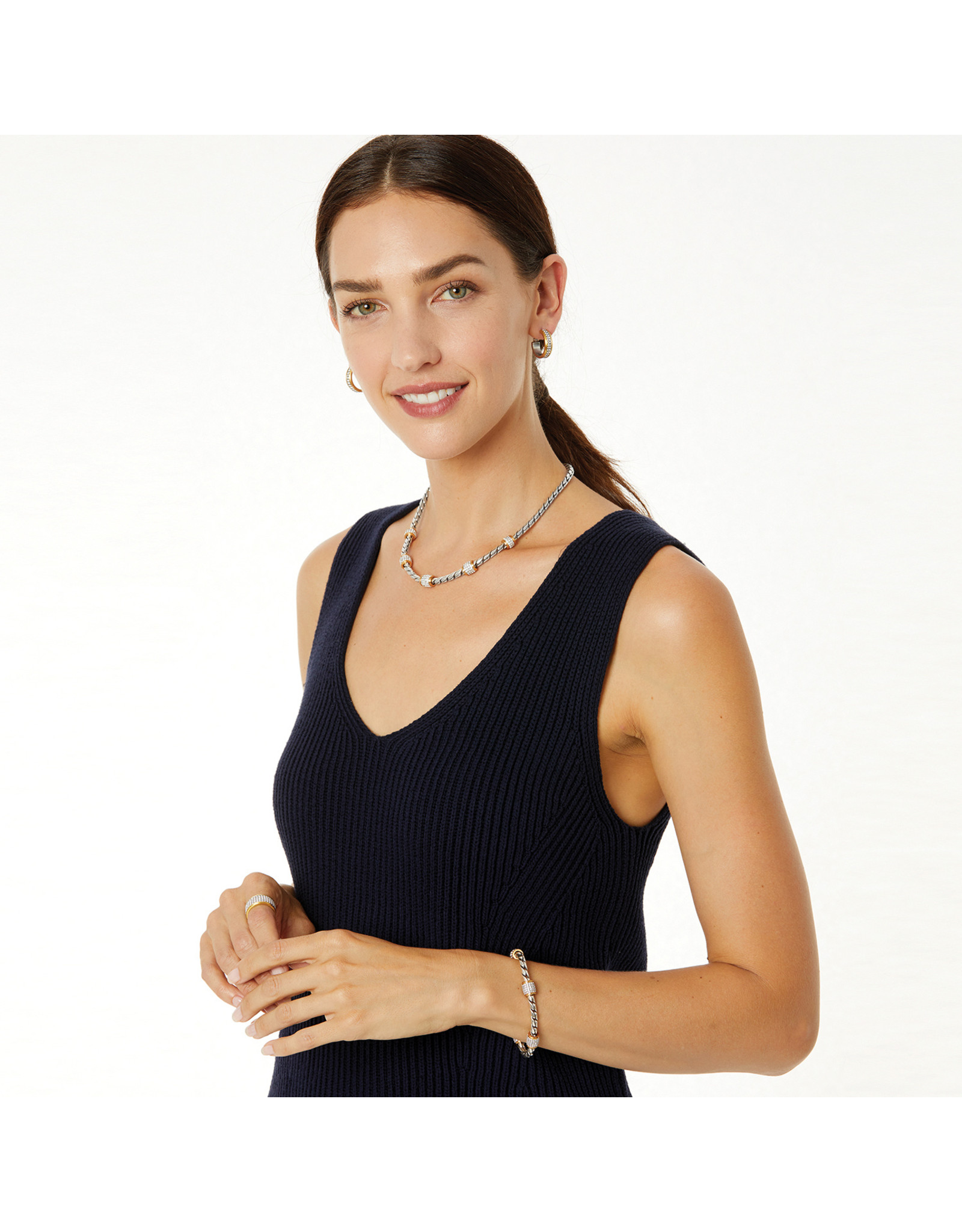 A touch of gold on each barrel station of pave Swarovski lends warmth to this fine jewelry-like collection. Wear this bracelet and expect compliments.