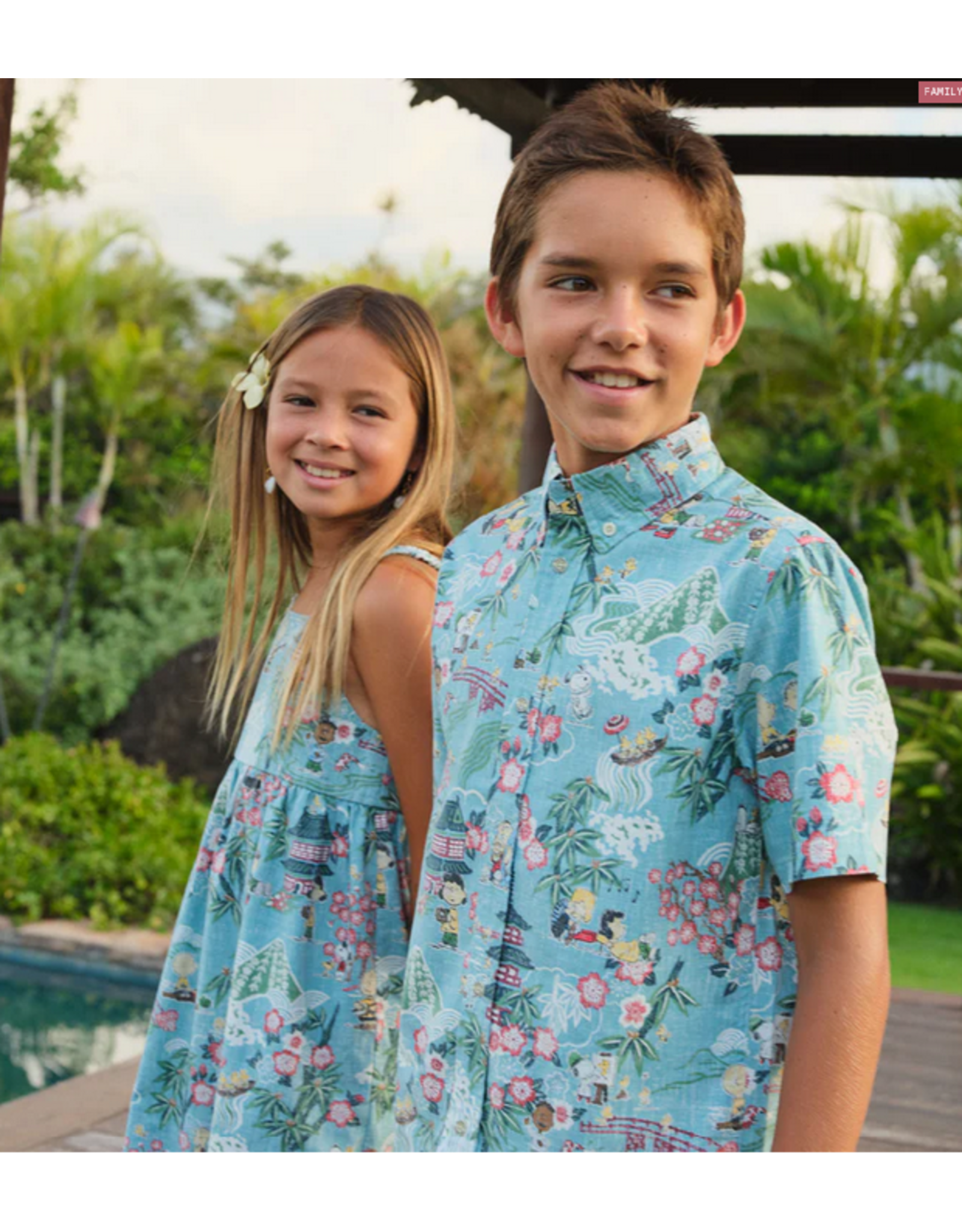 Reyn K697426025 Peanuts in Japan Kids Button Front Shirt Teal